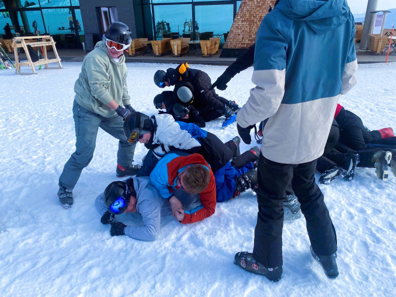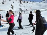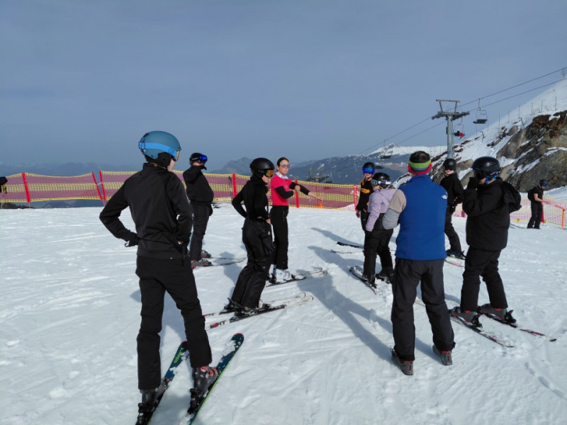 Heute erlebten wir einen weiteren tollen Tag im Skilager. Die Anfänger, die gar nicht mehr wie Anfänger fahren, haben heute viele tolle Sachen mitgemacht, beispielsweise auf einem Bein fahren, das erste Mal Sessellift fahren, den Stockeinsatz üben, Schuss fahren, zweimal zur Mittelstation fahren und sich weiter mit den roten Pisten vertraut machen. Die fortgeschrittenen Skihasen haben weiter an ihren Drehungen gefeilt und haben sich an ein paar Sprünge gewagt. Die langsameren Lerner haben sich auch weiterentwickelt und sich mehr mit der Technik vertraut gemacht. Wir sind gespannt, was die letzten zwei Skitage auf uns zukommt.