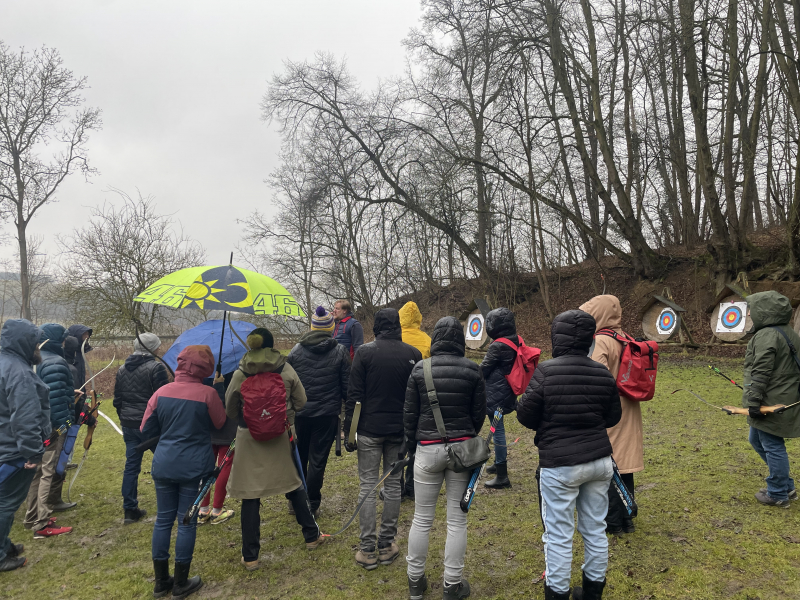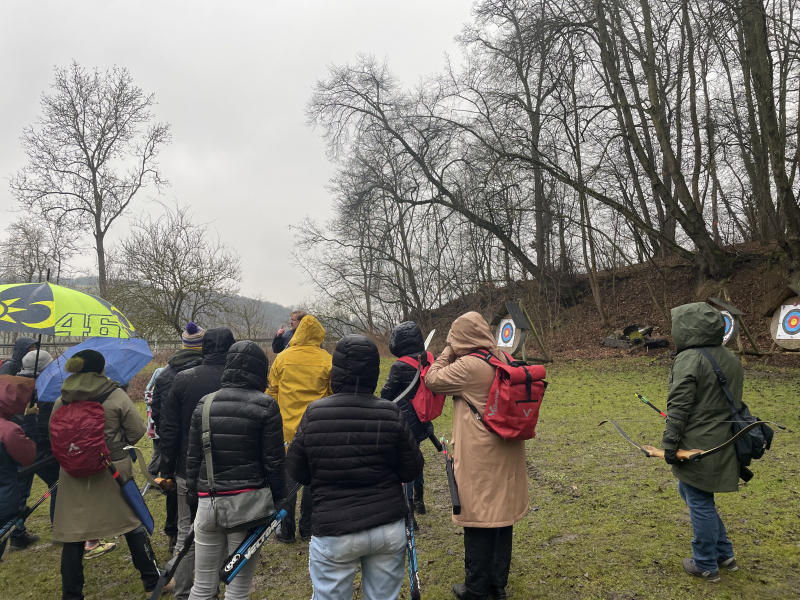 In Camburg erwartete uns eine Bogenschieß-Einheit zur Teambildung. Mit Pfeil und Bogen in der Hand konzentrierten wir uns auf unser Ziel, spürten die Ruhe und Fokussierung, die dieser Sport erfordert, und stärkten gleichzeitig unser Vertrauen in uns selbst und unser Team.